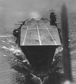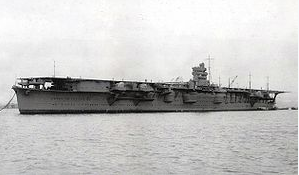 Описание Акаги — японский авианосец времён Второй мировой войны. Второй по времени постройки авианосец Японского Императорского флота, перестроенный из недостроенного линейного крейсера. В начале войны был флагманским кораблем японского ударного авианосного соединения. Принимал участие в атаке на Пёрл-Харбор, боях в Юго-Западной части Тихого океана и рейде японского флота в Индийский океан. Потоплен в ходе сражения у атолла Мидуэй. Сражение у атолла Мидуэй и гибельПосле возвращения из Индийского океана Ударное авианосное соединение получило приказ готовится к решающему сражению с американским флотом, которое должно было состоятся после захвата атолла Мидуэй. 27 мая 1942 года огромный флот начал движение. «Акаги», как обычно, стал флагманским кораблем вице-адмирала Т. Нагумо. Утром 4 июня самолёты с японских авианосцев нанесли удар по аэродрому на атолле. В атакующей волне было 108 самолётов (по 36 каждого типа), в том числе 18 D3A «Вэл» и 9 A6M «Зеро» с «Акаги». Остальные самолёты остались на кораблях, готовясь к атаке на американские корабли, причём B5N «Kate» были вооружены торпедами. После завершения атаки Мидуэй было принято решение о повторном налёте. Самолёты стали вооружать авиабомбами, но в этот момент поступило сообщение об обнаружении американских кораблей. Нагумо приказал снова начать замену обычных бомб на торпеды и тяжёлые бронебойные бомбы для нападения на корабли. Из-за недостатка времени, снятые авиабомбы складировали на ангарной палубе. ... В 10:25 первая 1000-фунтовая бомба (454 кг) детонировала в воде в 10 метрах от борта авианосца, залив полётную палубу и внутренние помещения корабля потоками воды. Вторая бомба разорвалась в районе центрального подъёмника, повредив полётную палубу. Взрыв бомбы уничтожил несколько самолетов, стоявших на палубе и в ангарах, другие машины загорелись. Третья бомба, разорвалась на самой кромке взлётной палубы, не причинив авианосцу серьёзных повреждений. Однако взрыв этой бомбы вызвал пожар в топливных баках самолётов, стоявших в конце полётной палубы в ожидании старта. В 10:29 начали детонировать торпеды, подвешенные на горящих самолётах. Подготовленные к взлёту торпедоносцы разлетелись на куски. Разлившееся по палубе горящее топливо вызвало пожар — огонь начал стремительно распространяться по кораблю. В довершение картины, взрыв бомбы на корме авианосца заклинил руль в положении 20° на левый борт и авианосец начал циркуляцию. В 10:43 истребители «Зеро», стоявшие у правого борта напротив боевой рубки загорелись и начали взрываться. Эти взрывы нарушили радиосвязь «Акаги» с другими кораблями эскадры. В 10:46 Нагумо вместе со своим штабом покинули корабль. Около 11:35 детонировали склад авиационных торпед и артпогреба на баке авианосца. Эвакуация раненных на крейсер «Нагара» завершилась к 11:30. Экипаж корабля прикладывал все усилия, чтобы локализовать пожары, но постепенно становилось ясно, что огонь выходит из-под контроля. В 18:00 капитан 1-го ранга Таидзиро Аоки, оценив число погибших и раненых и распространённость пожара, приказал команде оставить корабль. В 19:20 капитан 1-го ранга Аоки послал вице-адмиралу Нагумо радиограмму с просьбой добить обречённый корабль. 5 июня 1942 года в 3:50 Ямамото приказал затопить агонизирующий авианосец. Вице-адмирал Нагумо приказал командиру 4-го дивизиона эсминцев к