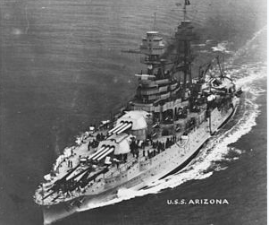 Описание «Аризона» — американский линкор типа «Пенсильвания». Спущен на воду 19 июня 1915 года. Потоплен японской авиацией 7 декабря 1941 года в Пёрл-Харборе. Не поднят. Останки корабля, находящиеся на дне бухты, превращены в мемориал. Гибель линкора Во время налёта японской авиации в линкор попали четыре мощных авиабомбы. Попав в носовые отсеки и пробив несколько палуб, они взорвались глубоко в корпусе корабля, где располагались погреба боезапаса главного калибра. Произошла детонация погребов носовых башен ГК. После чего линкор стремительно набрал воду и лег на грунт. Из примерно 1400 человек, находившихся на борту, спастись удалось лишь каждому девятому. 1177 человек погибли.